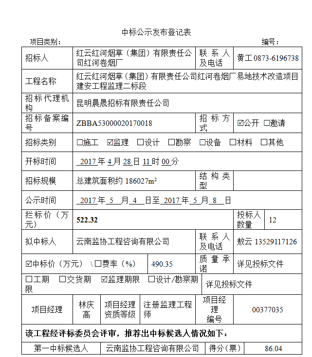 招标人:红云红河烟草(集团)有限责任公司红河卷烟厂